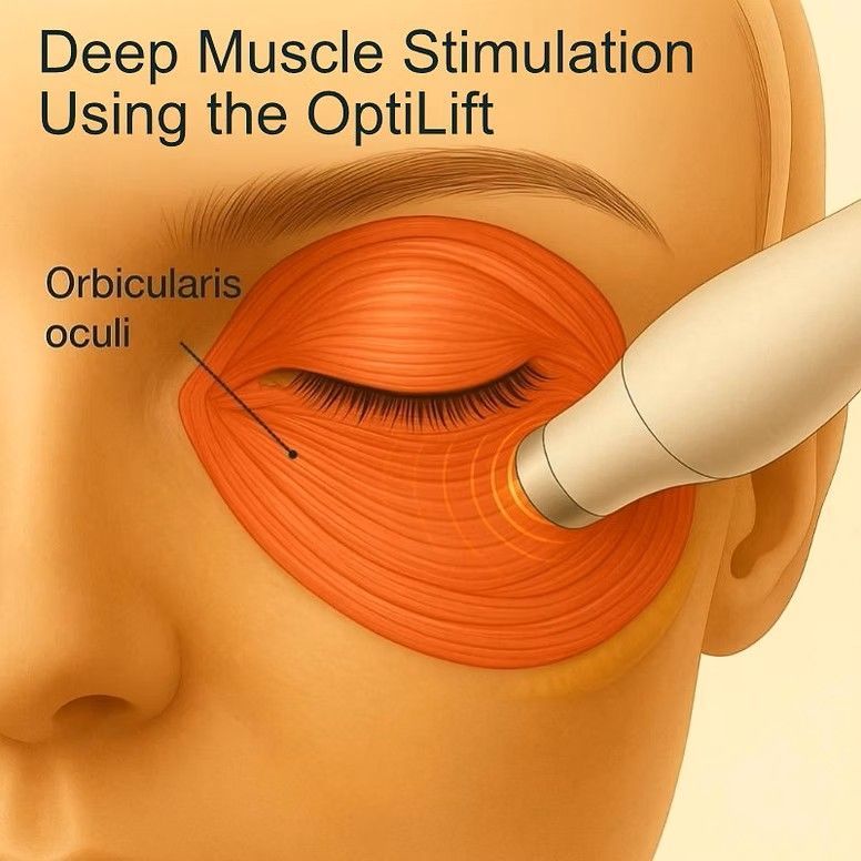 OptiLift by Lumenis gently firms the delicate skin around your eyes for a refreshed look—no surgery, no downtime. In a quick 15–20 minute session, noninvasive radio-frequency plus facial-muscle stimulation warms the dermis to support collagen and tone the muscles that drive blinking. The result: a subtly lifted appearance and healthier blink mechanics that can support meibomian oil flow and ease dry-eye discomfort. Experience clinical innovation with spa-level comfort, then step back into your day feeling radiant. Results vary.